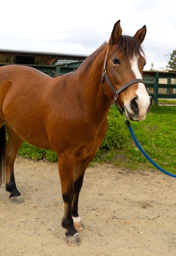 Charlotte is a stunning bay Morgan/Cob Pony with a distinctive white blaze, standing 13.1 hands high. She is happily trading her days as a show hunter for mounted sessions at NCEFT and is making the transition with ease. Thanks to her sweet, charming nature, Charlotte is quickly becoming a barn favorite. She absolutely thrives on attention—and true to her reputation as a cookie monster, she never misses a chance for a tasty treat!