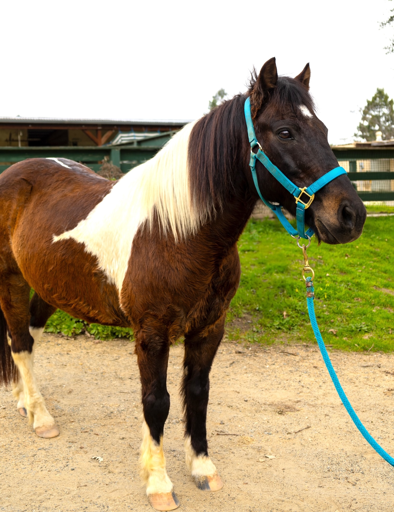 Born in 2018, Vinnie is currently the youngest member of the team. He is an adorable black-and-white paint Quarter Pony standing 13.3 hands high. He joined NCEFT in May 2025, and is already learning the ropes and stealing hearts along the way. Vinnie has quickly become a favorite of our therapists, especially when working with our tiniest clients. When he’s not on the job, you’ll find him happily spending time with his stable mates and best buddies, Tino and Checkers, or heading out for long, sunshine-filled walks.